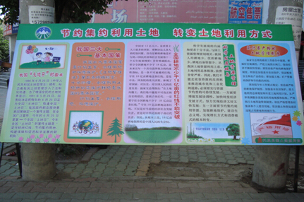 6月24日至6月25日,赤峰市国土资源分局在门前广场组织开展以“节约集约利用土地 转变土地利用方式”为主题的宣传活动。通过在广场摆放宣传板、悬挂宣传标语、设置业务咨询台、出动流动宣传车和业务宣传员发放宣传单、宣传册等形式。 在本地区营造节约集约利用土地的良好氛围,增强全社会珍惜土地资源、节约集约用地的自觉性。