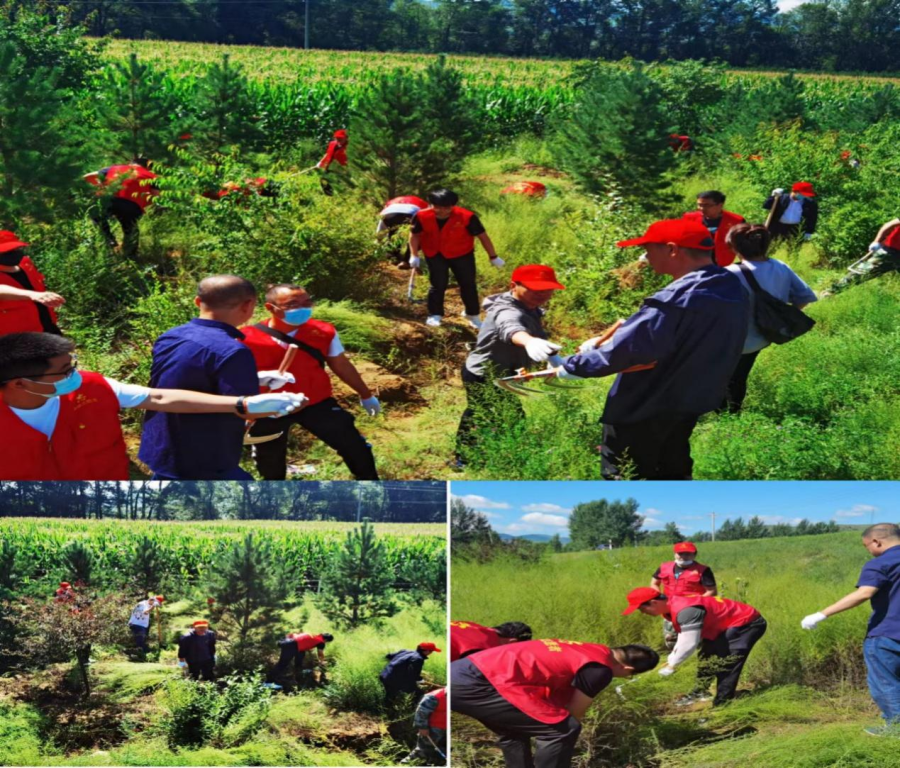 参加活动的同志们手持镰刀锄头,冒着酷暑、顶着烈日,不怕脏,不怕累,两人一组,协调配合,经过一上午的辛勤劳动,将约420米道路两旁的蒿草清理干净。