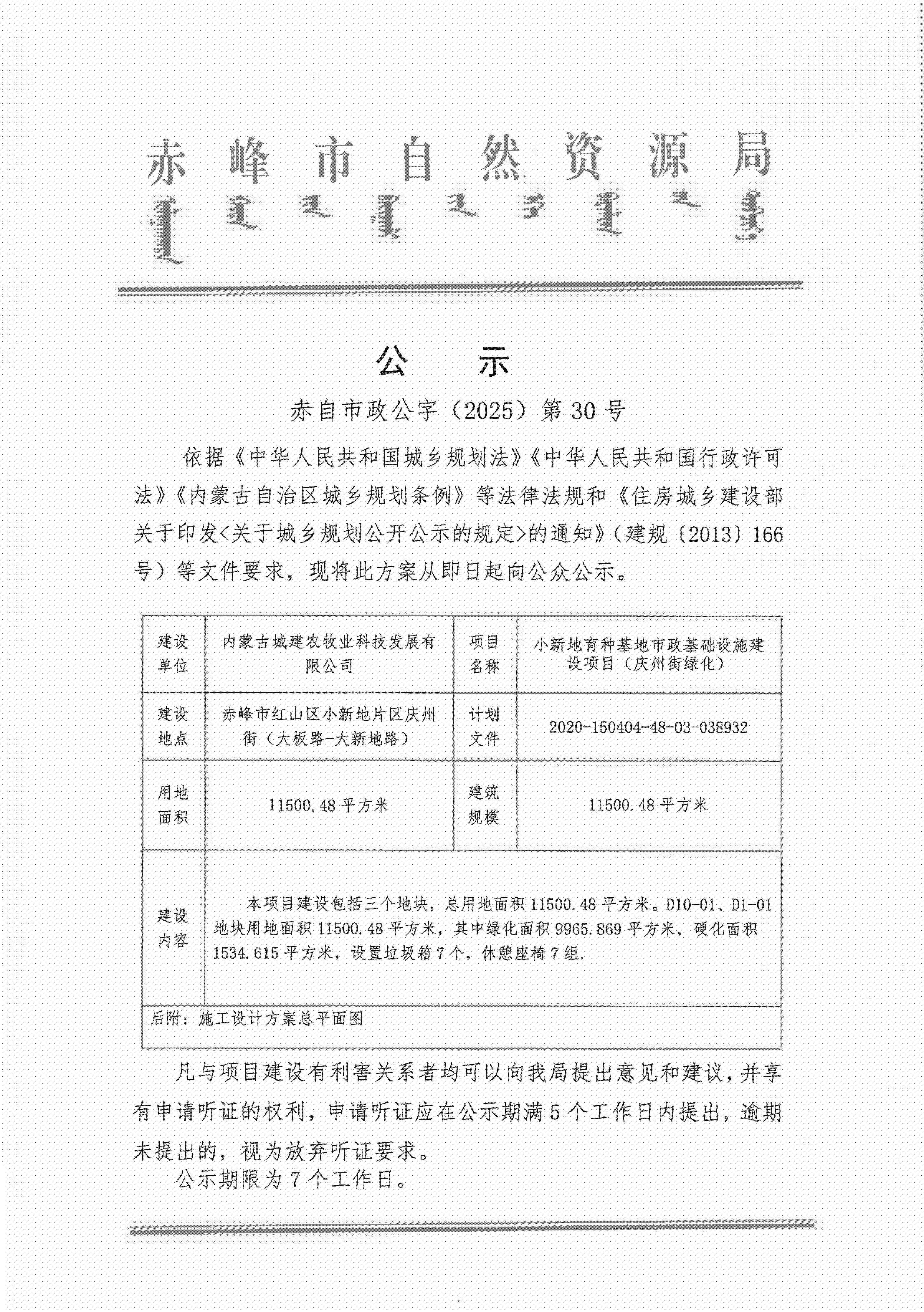 小新地育种基地市政基础设施建设项目(庆州街绿化)
