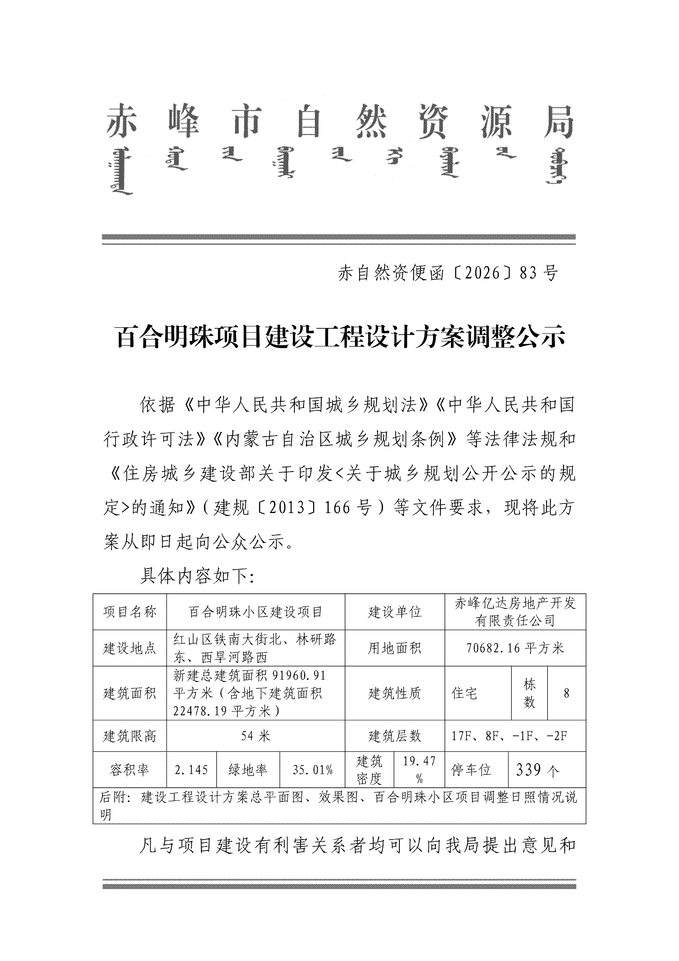 相关附件:百合明珠小区项目方案调整日照情况说明